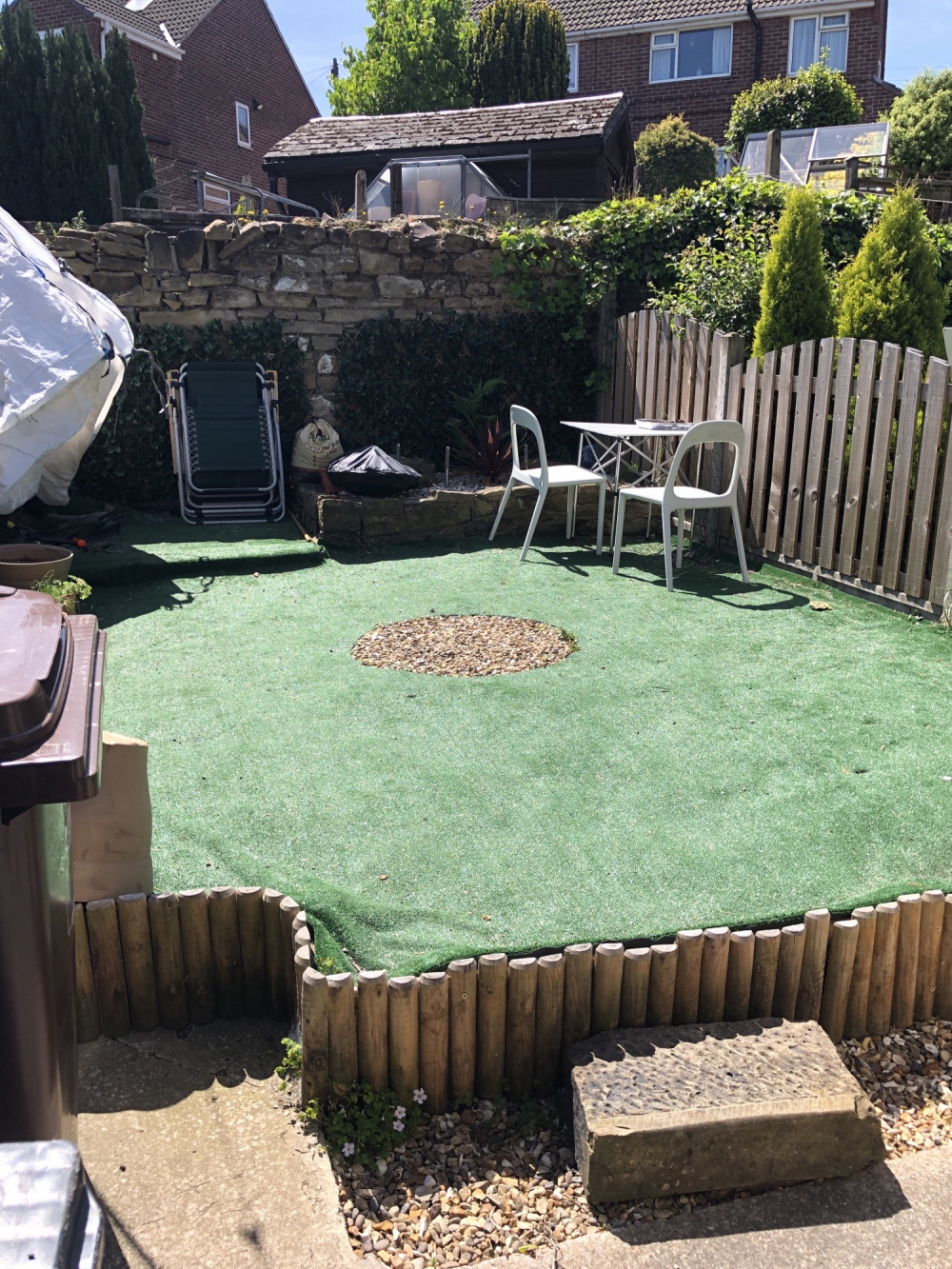 Currently it is covered in (cheap) astroturf from the previous owners which I cannot stand.