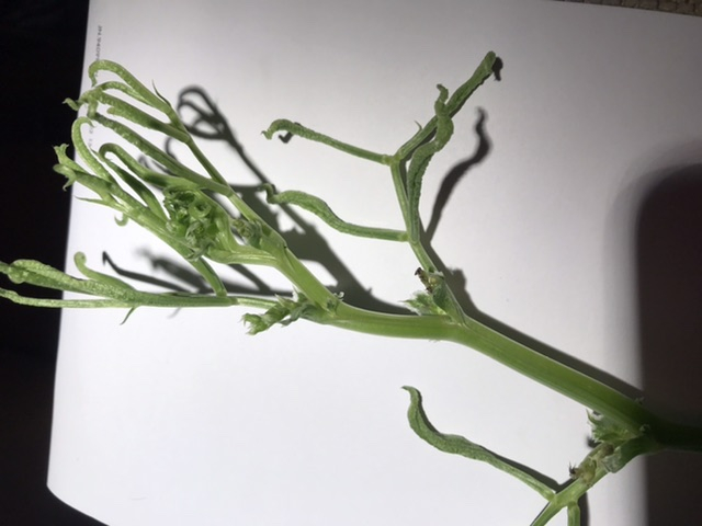 Any idea what is wrong.... 7 plants ok but on 1 leaves are all curled and it is half the height of the others. See pic. Suspect virus??