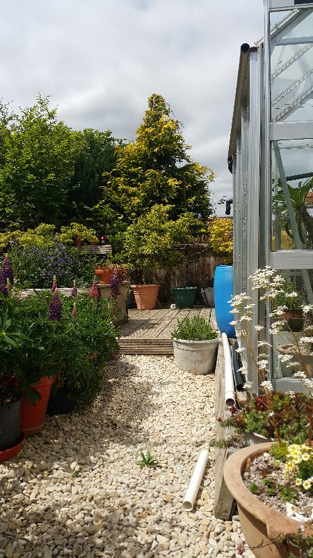 The tree in the centre of this photo is a dwarf conifer my wife brought home about 10 years ago. The ground level at the base of the trunk is about 1.5m below the decking