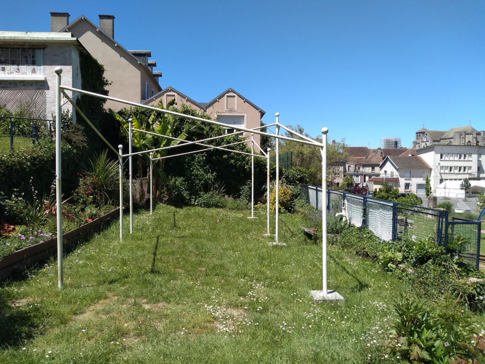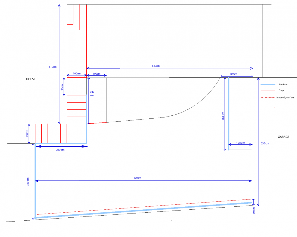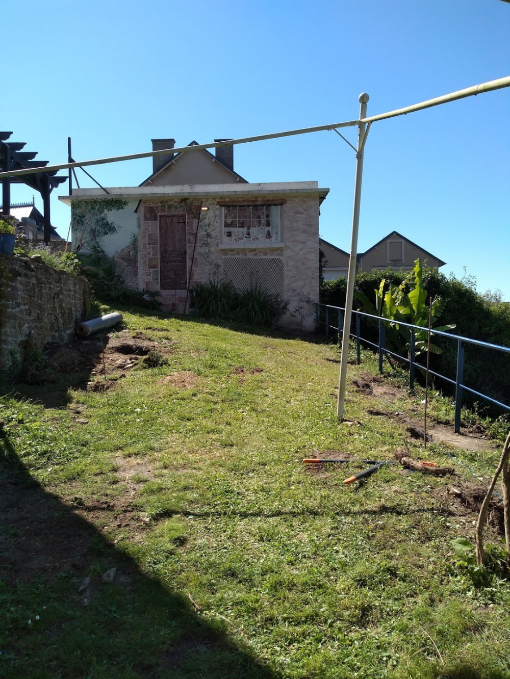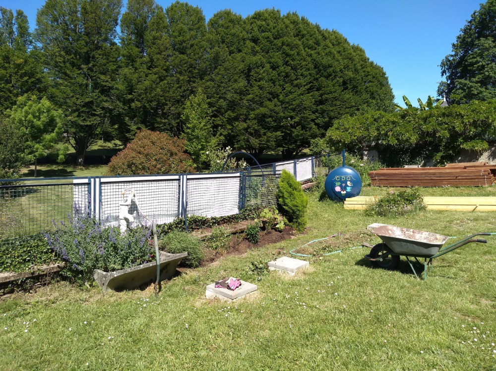 Lower garden before new beds were added. sails to be added to pergola frame when builder is finished, new deck will be above, looking down on this view. The original terrace is higher again. After all this I do hope customers return.
