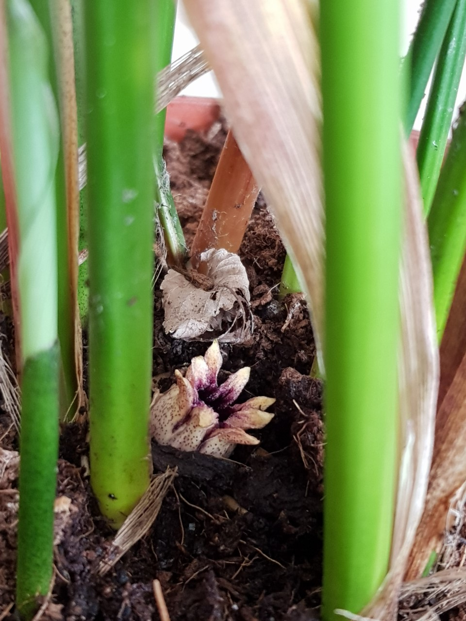 My plant is named Gracie Covid, daughter of Hale Bopp. I discovered this underwhelming flower this morning, just ten weeks short of planting her. I called the chap who sold it to me and he was amazed, he's only seen an aspidistra flower about twice in 30 odd years!