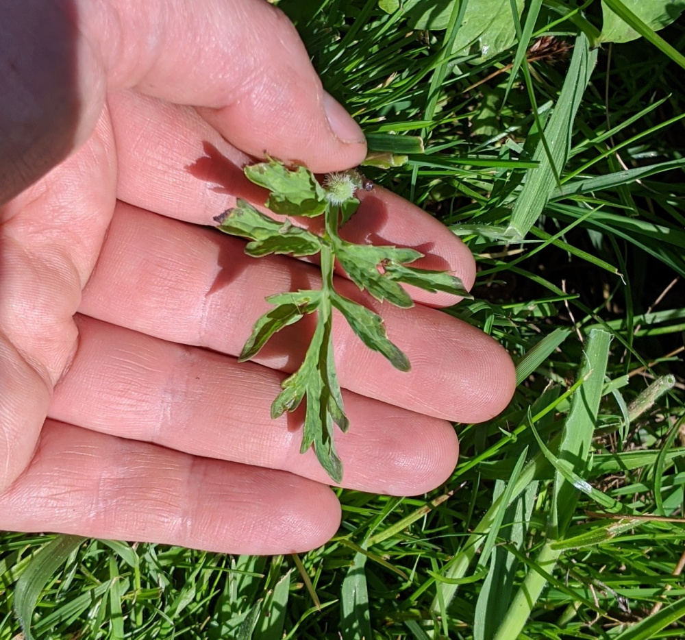 We have a sunken lawn and around the edge is a narrow trench which tends to fill with various weeds/wildflowers. I like how it softens the edge of the lawn and it's become home to a sizeable frog population so I like to let it do it's own thing. However I am trying to identify all the plants in there so I know there's nothing too pernicious. It's mostly wild strawberries and forget-me-nots, but could you please help ID these for me?