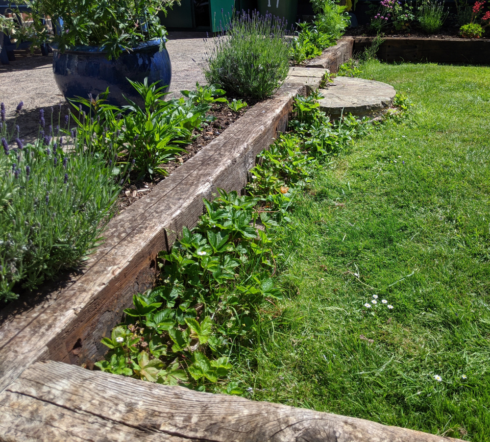 Yes there's loads of wild strawberry. I'm leaving it for now, it can't really send runners up from the lawn edges without me noticing and its easy enough to thin out when it gets too big. Hasn't made any inroads into the lawn over the last couple of years either.