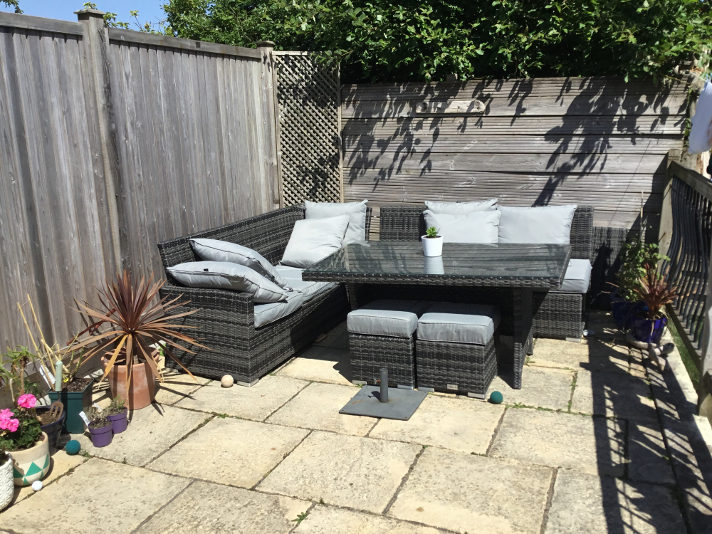 fence colour here? Trellis covers gap in fencing so not sure about paining that too.