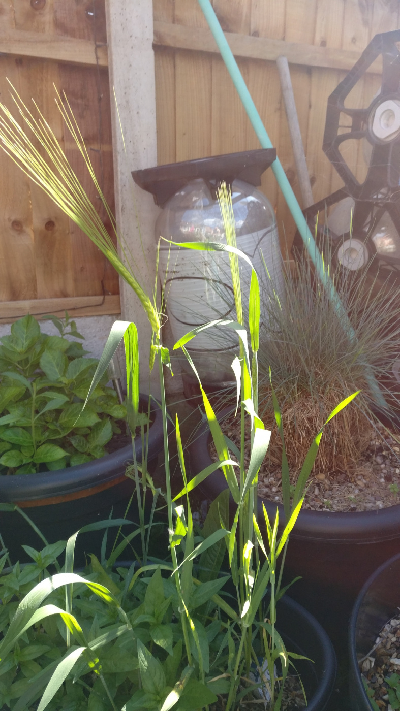 Have you got a bird feeder nearby? It looks like wheat to me.