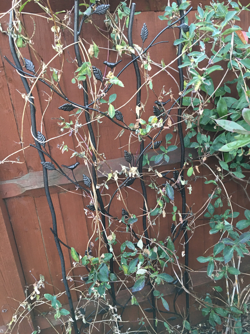 Our honeysuckle (40 years old) grows over an archway by the gate and is shaded by a magnolia tree. It is in full leaf and flowers.