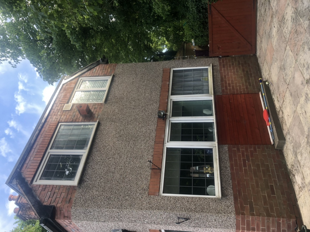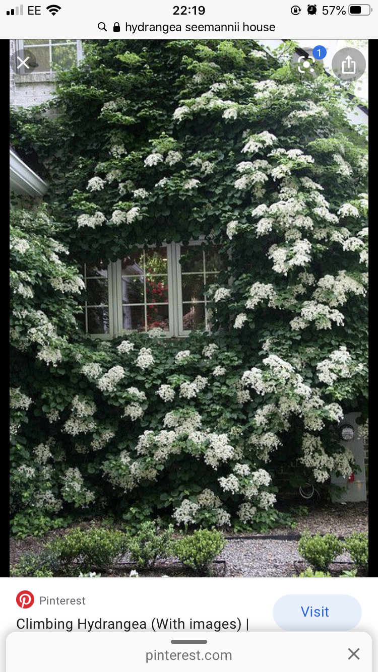 thinking about getting a climber(s) to grow up our extension as my mrs finds it ugly and I am not in a position to get it rendered at the moment, I’m looking for climbers that are evergreen and that could be trained to cover the walls but not the windows. Have come across a couple already that may do the job one is creeping Virginia red ivy and the other is star jasmine. Read different info on star jasmine some say it grows 8mts tall and others say 3mtr tall. The area is quite shaded and sheltered by trees and is north west facing. I’ve got a scaffold tower so getting to the top to fix garden wire all around the wall is not a problem and the same goes for pruning then. I’ve seen there are only a couple of Clementis that are evergreen but they do not grow tall enough, from reading this forum I can see that I would need to grow a few in a long container about 500mm deep x 500mm wide, would remove the concrete step for the old door so I can have one long container probably 500mm in from the ends. Any thoughts on what could work, or what you would grow up the wall? I have no experience with climbing plants, even thought about buying the red ivy on first then overlap this when fully covered with a climber which then wouldn’t need to be evergreen or go all the way to the top. But worried any ivy type would grow out of control due to being invasive and damage the wall due to the roots and damp issues etc. Pic of extension below