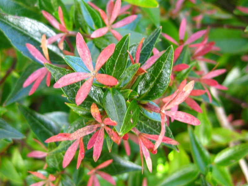 The colouring is more during the late autumn to winter time, but again, it depends on the local conditions in your garden. Not all shrubs end up with the reddish tones. This is also more highlighted when the flowers finish and the red/bronze coloured calyces hang on for a few more months.