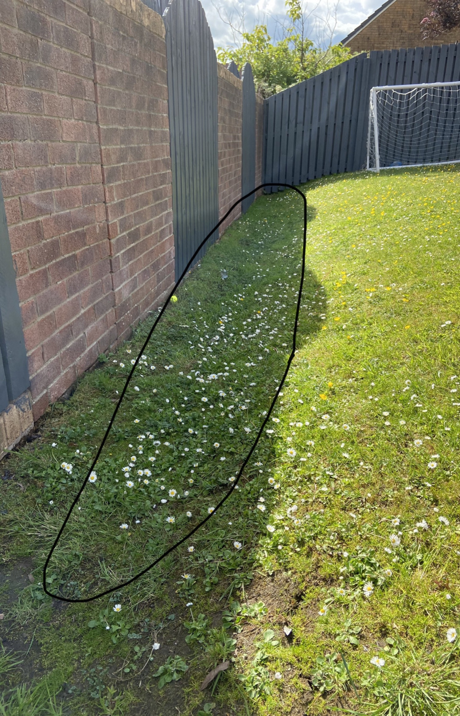 However the area at the bottom of my garden, where the garden dips considerably, has very poor drainage. During the wet months water gathers in the grass behind the brick wall. See picture for a better idea.