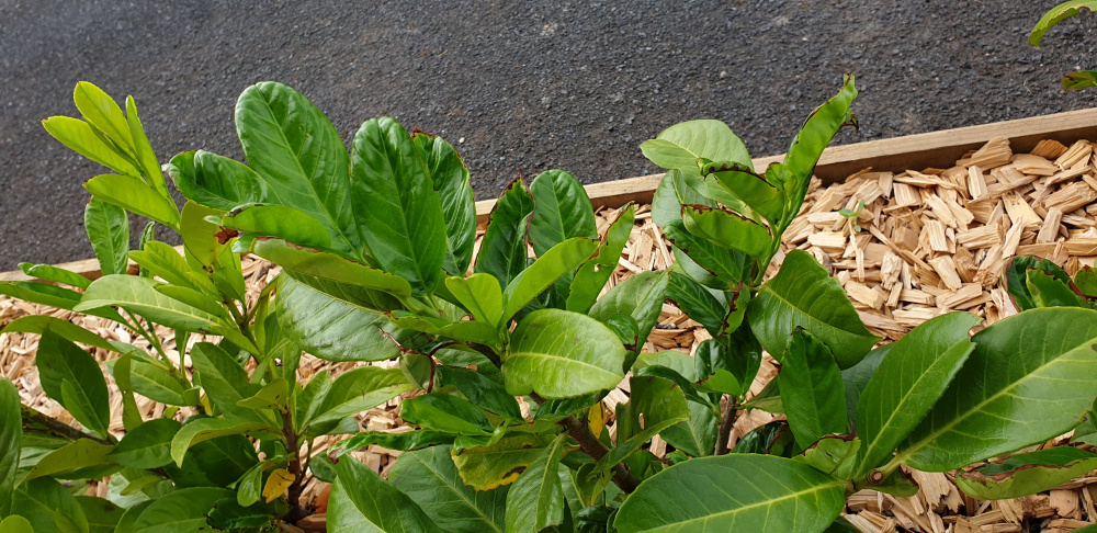 Many of the laurels have developed curled up and brown edged leaves as you can see in the photos. I've done some research but not found any conclusive treatment / remedy that I can apply.