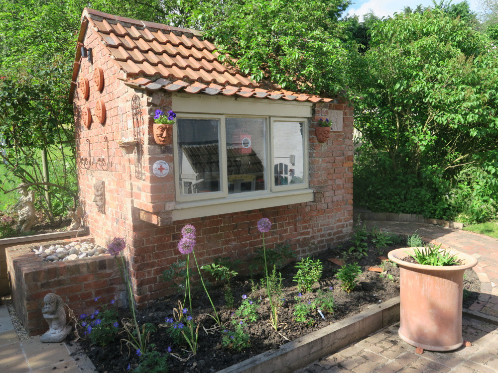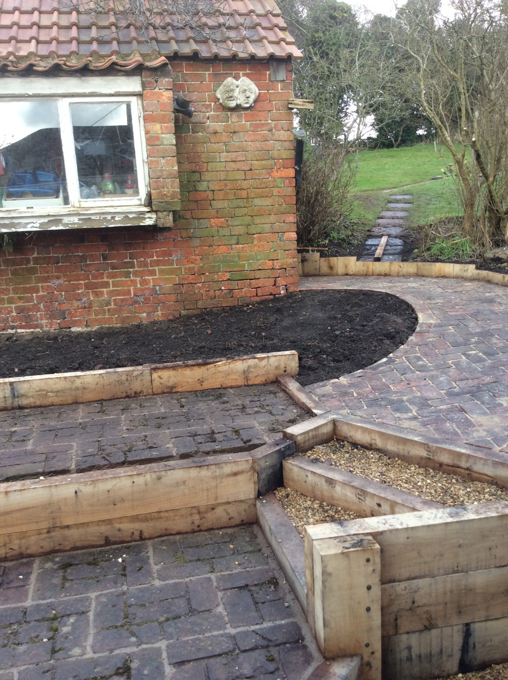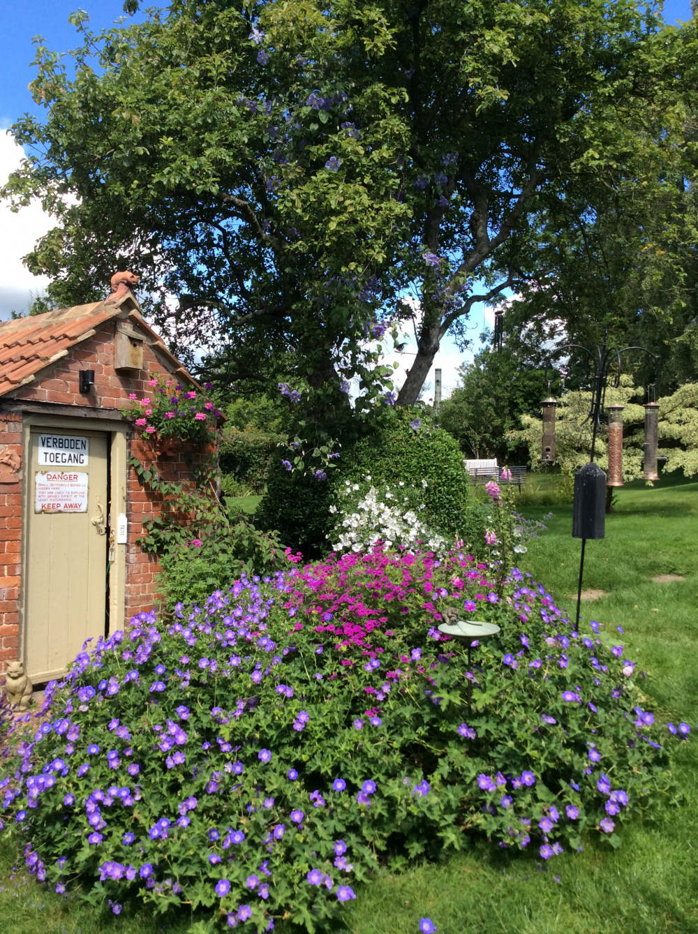 Replaced by geranium Rozanne and Ann Folkard. The herringbone brick path is to the left.