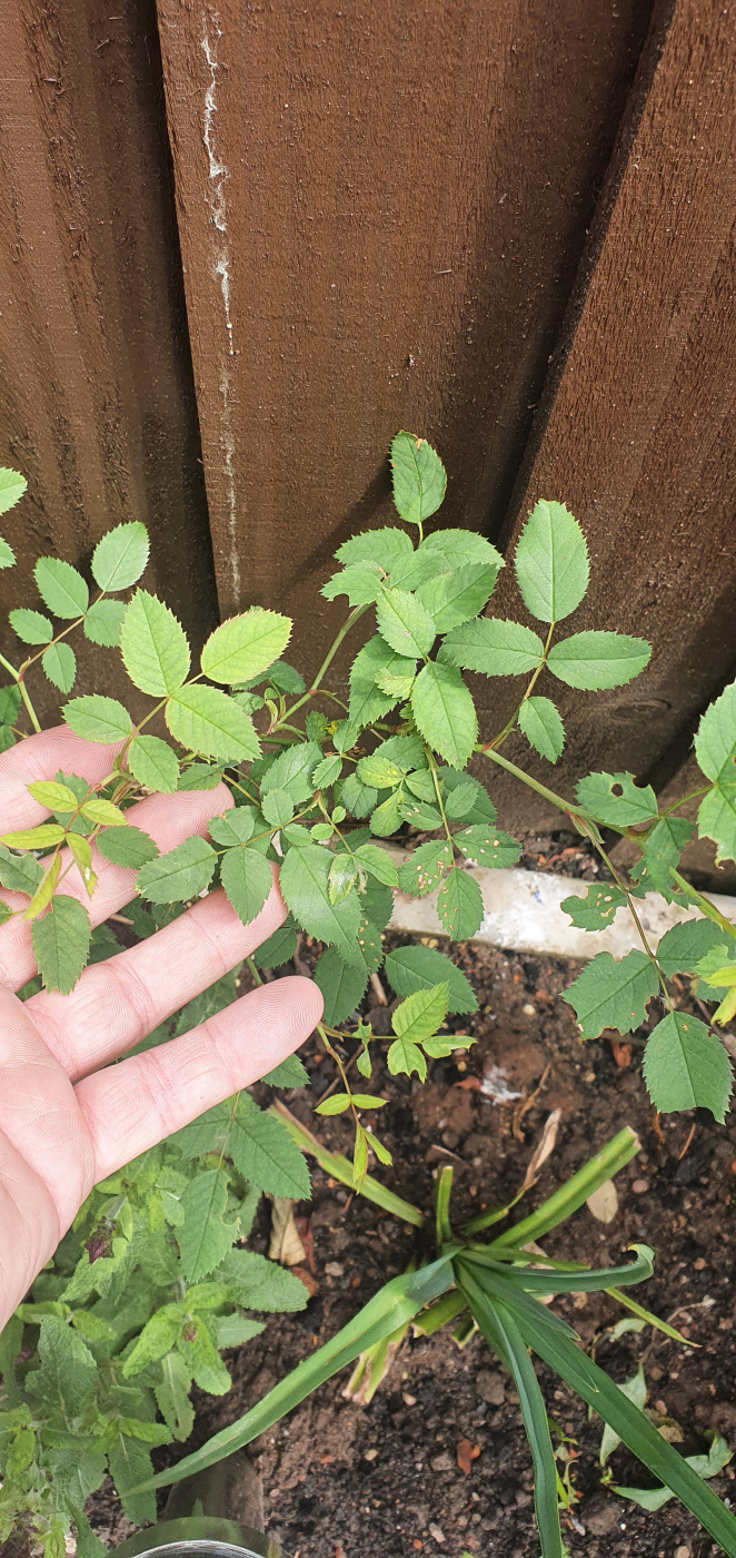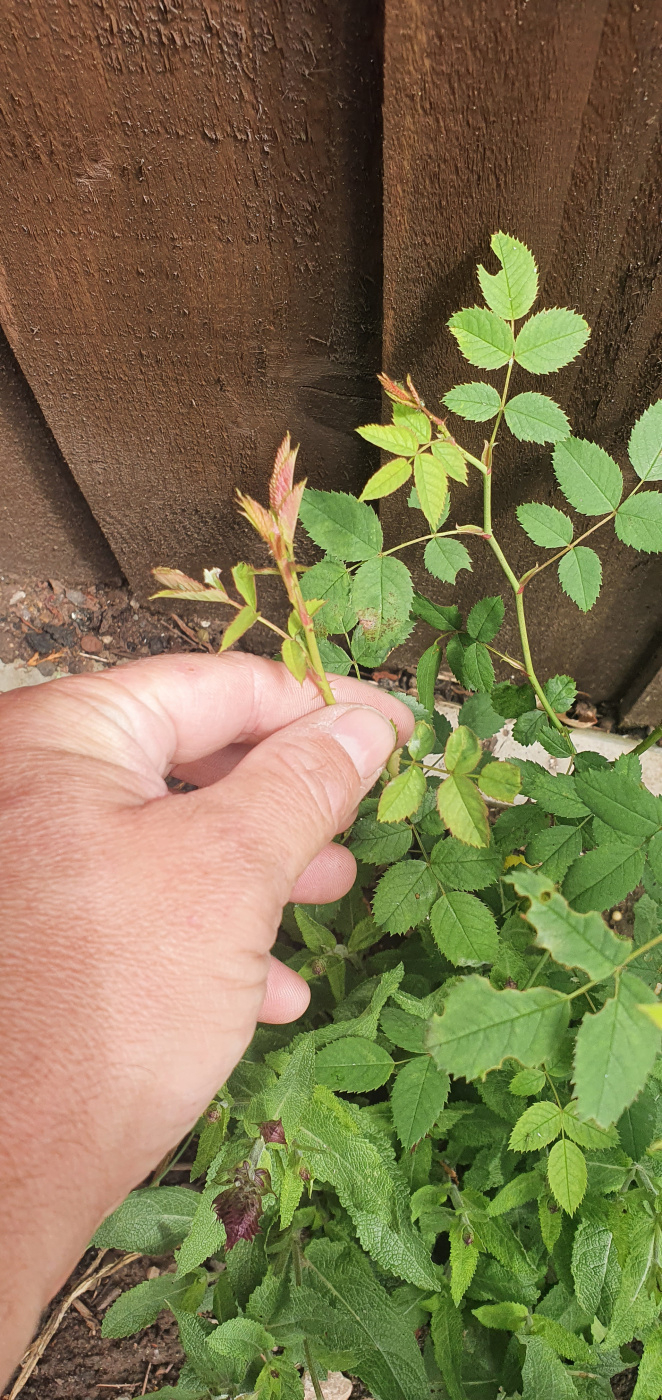 Well this morning i dug the mystery rose out and it wasn't attached to any of my roses. I've potted it up to see if it makes it and find out what it it.