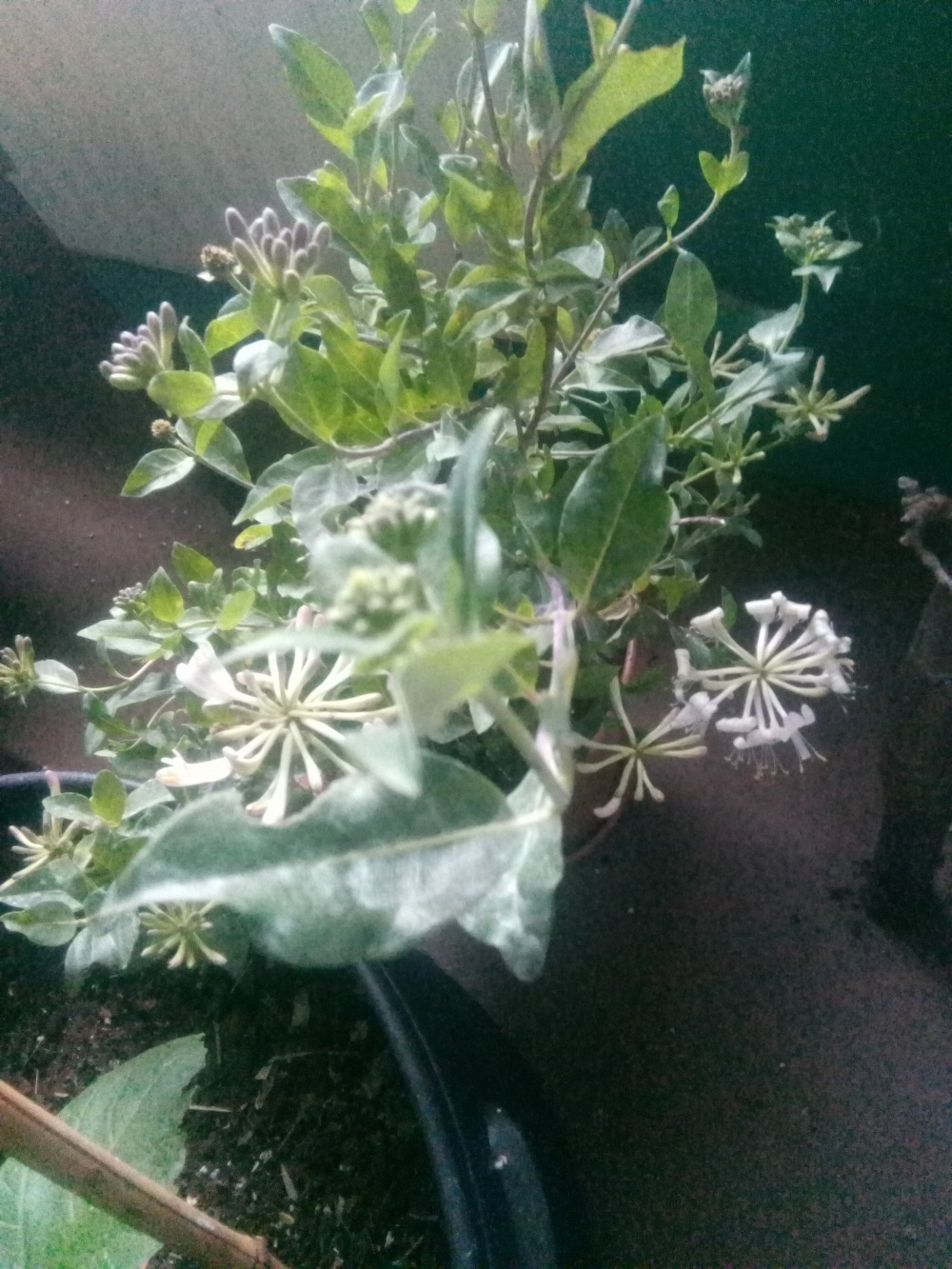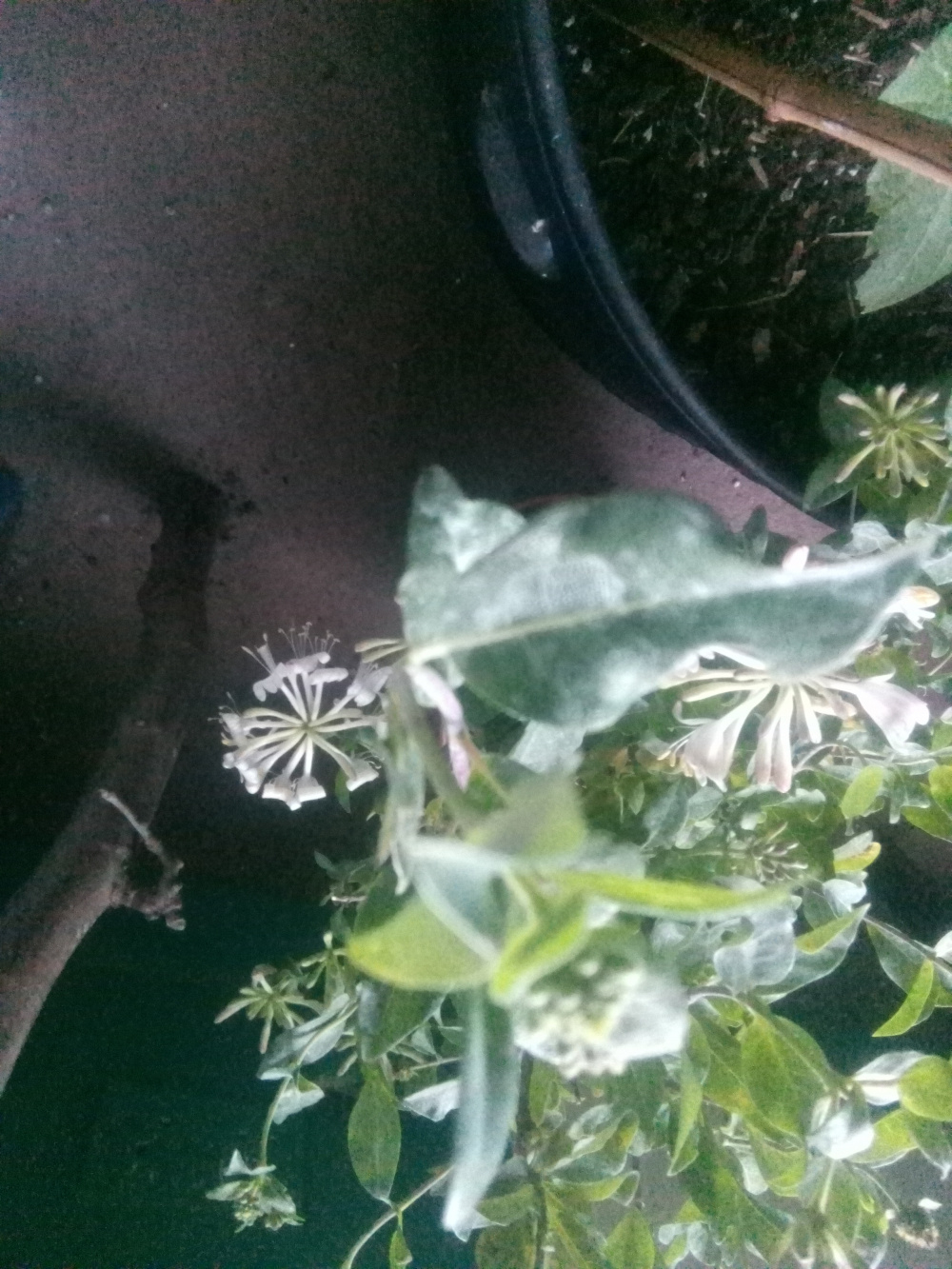 Hello I received this honeysuckle from the RHS and it has white residue on stems leaves and flowers. Is this powdery mildew or could it be water residue?