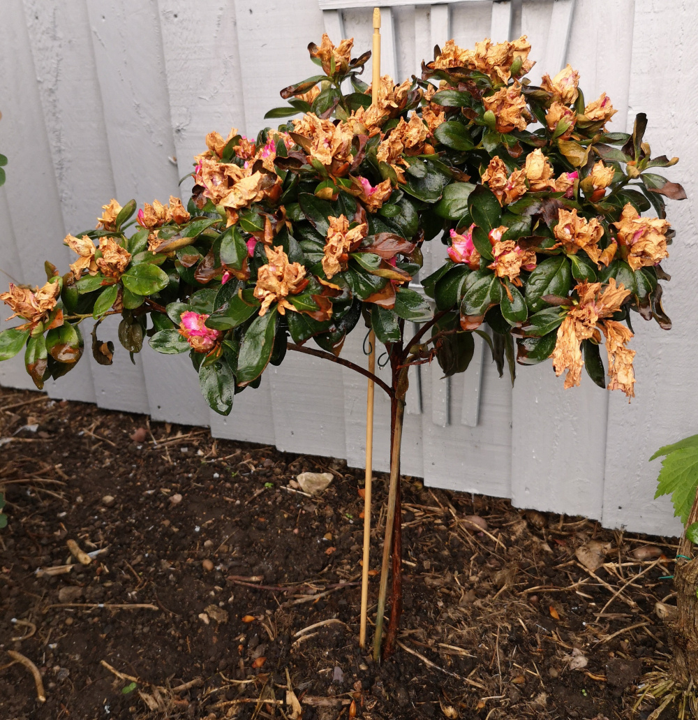 My new Azalea tree is looking brown. I thought it has past the flowering stage (it looked beautiful when it arrived) but I've noticed the leaves are a little brown in places too.