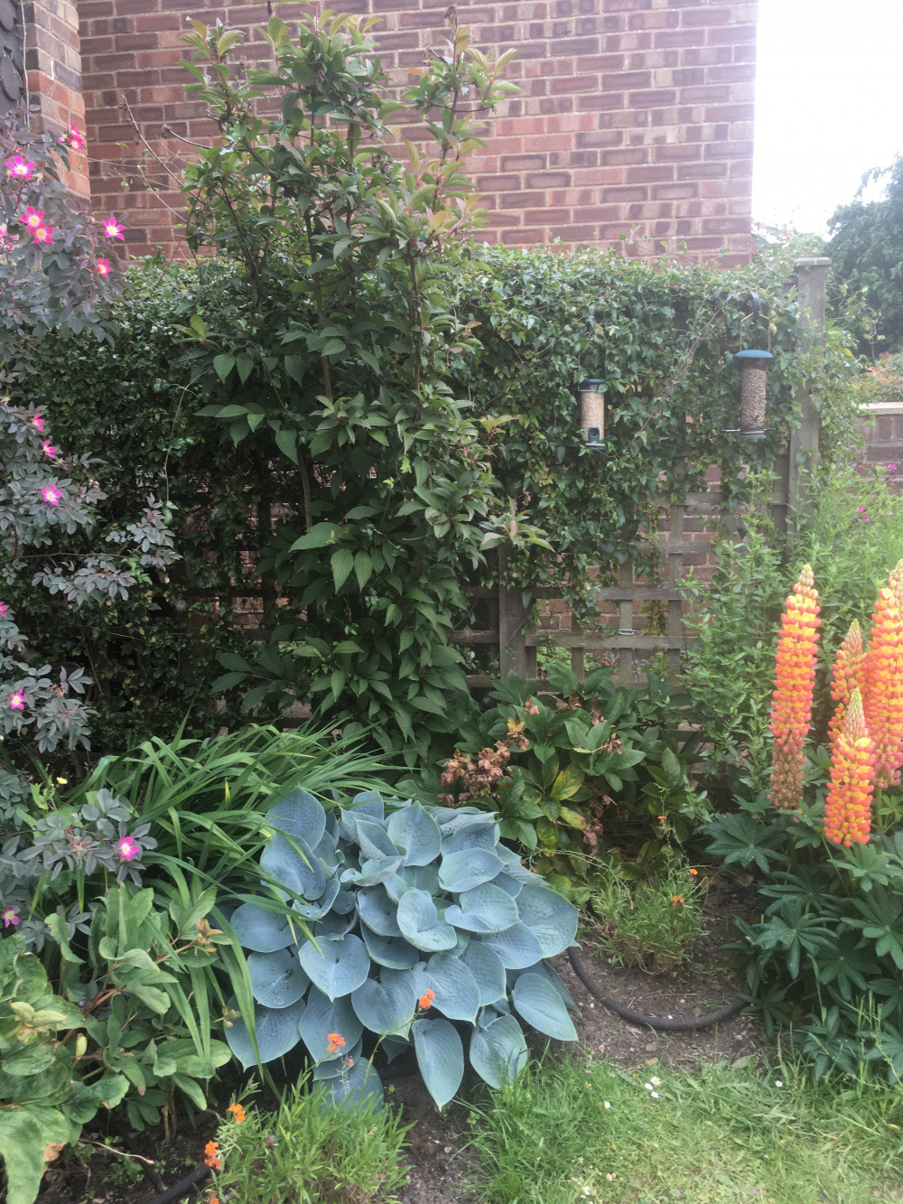 I have always loved to see Hostas in a garden, but had never had any real success with them. The big issue is that slugs and snails like them a lot too. Very quickly a really beautiful plant is reduced to a Holy mess. Currently I have three different varieties in my garden. One is clearly losing the battle, another has begun it's battle. I have tried poisons (although with the birds that I get only using a slug bell), slug wool, beer traps and this year nemitodes. Yes they all kill slugs and snails, but not enough of them to stop the attack on my Hostas. Hope is not lost though. I have found a variety called Hosta Big Daddy, a shade loving plant that preports to be slug resistant. It's on it's second season and really is living up to it's claims. So far no holes. I have occasionally found slug trails on the leaves (easy to wash off) but no holes. It stands resplendent on it's chimney column hopefully for many years to come.it would be nice to find other varieties of hosta with these qualities. Any suggestions ?