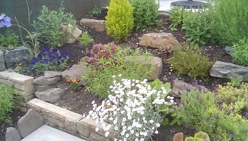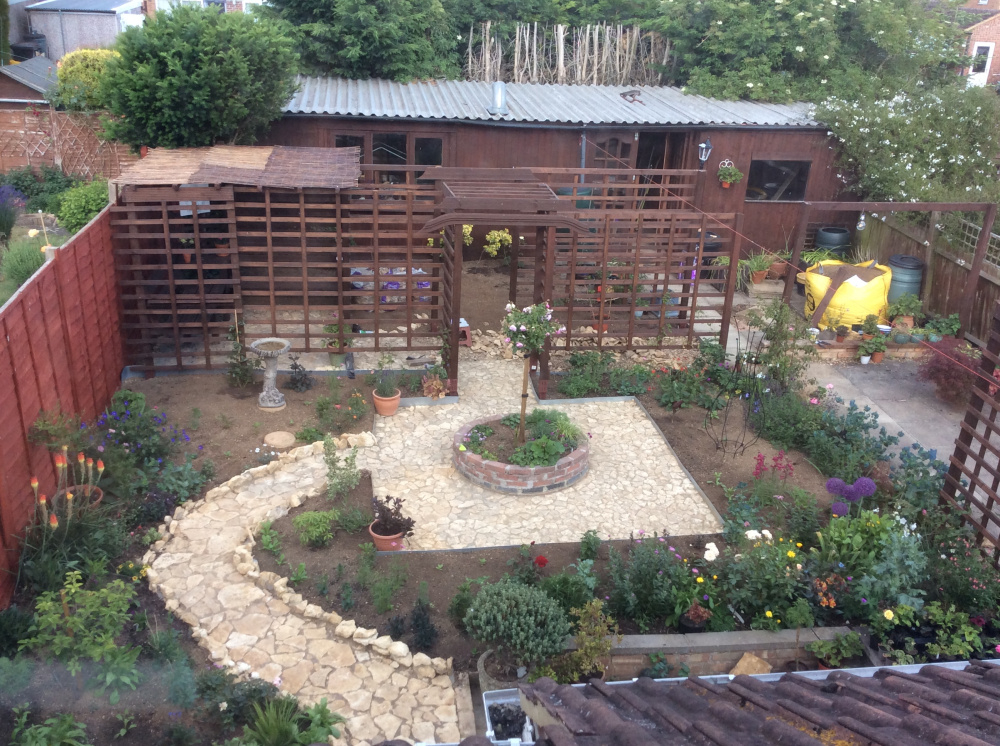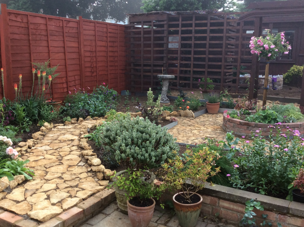 My garden transformation is not complete yet. It has been hard work with whole days of digging stones out of the soil, but it’s been worth it. All the stones I’ve used for the paths and edging are from the soil.
