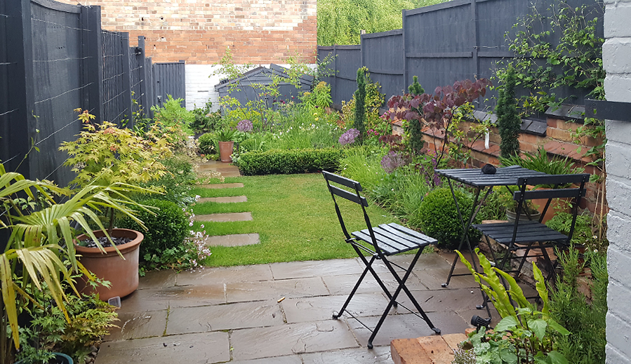 My garden was improved in the Spring of 2017 so here is a series of paired photos, the first taken in winter 2016/17 and the second just a few minutes ago - hence the rather wet look as it has rained a lot in the past 24 hours.