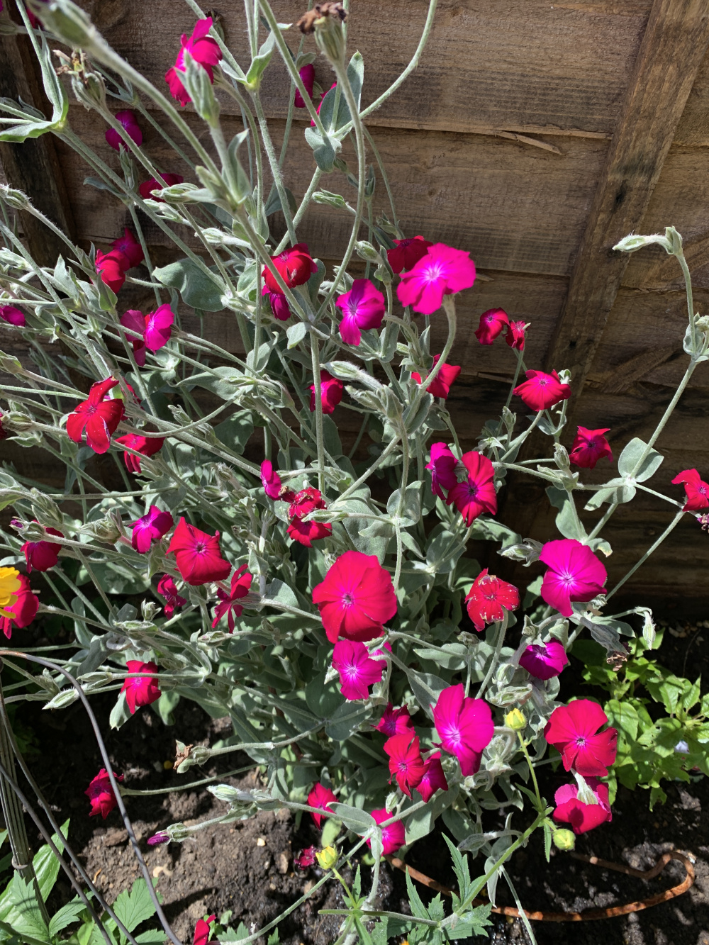 Lychnis coronaria has grey leaves.
