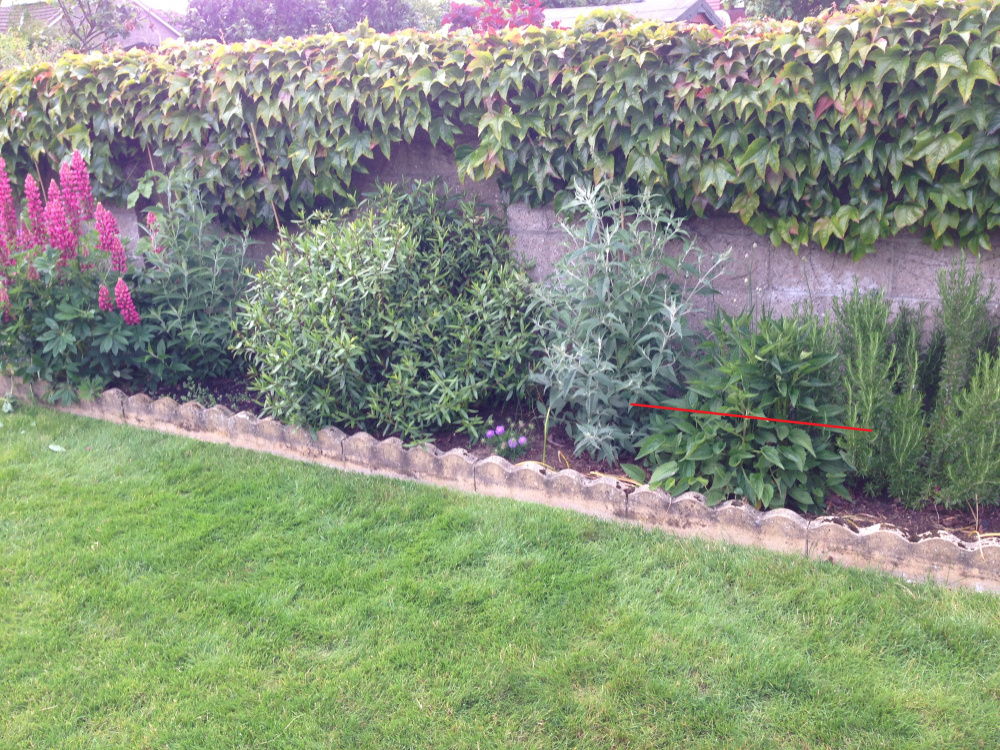 The picture below just happens to be a year ago to the day and the height it's at there was also with getting a chelsea chop. The red line is approximately the height of the plant right now with no chelsea chop.