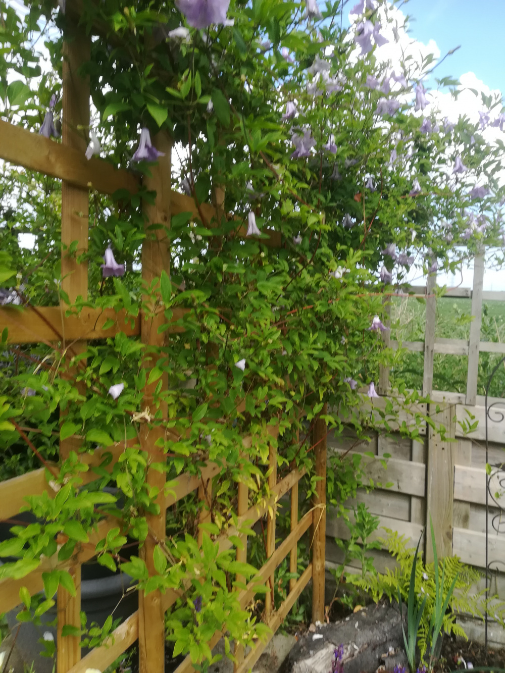 My husband has built a rustic arch using leftover pressure-treated poles, screwed together and lashed with coir rope. My job now is to plant it up! It’s a site in full sun, the soil is quite good (clay improved over the years with compost etc), and we are in the Southwest near Bath. I don’t want anything too heavy (not sure about the strength of construction!), so no honeysuckle or jasmine. I am thinking of a rose / clematis combination, but not sure about colours that go well together, plus pruning regimes that work, plus nothing too vigorous or thorny. Or possibly a permanent evergreen, and annual climbers like sweet peas. The other thing is what can I put in between the poles for the plants to climb up? I’m not very keen on plastic netting. Suggestions gratefully accepted!