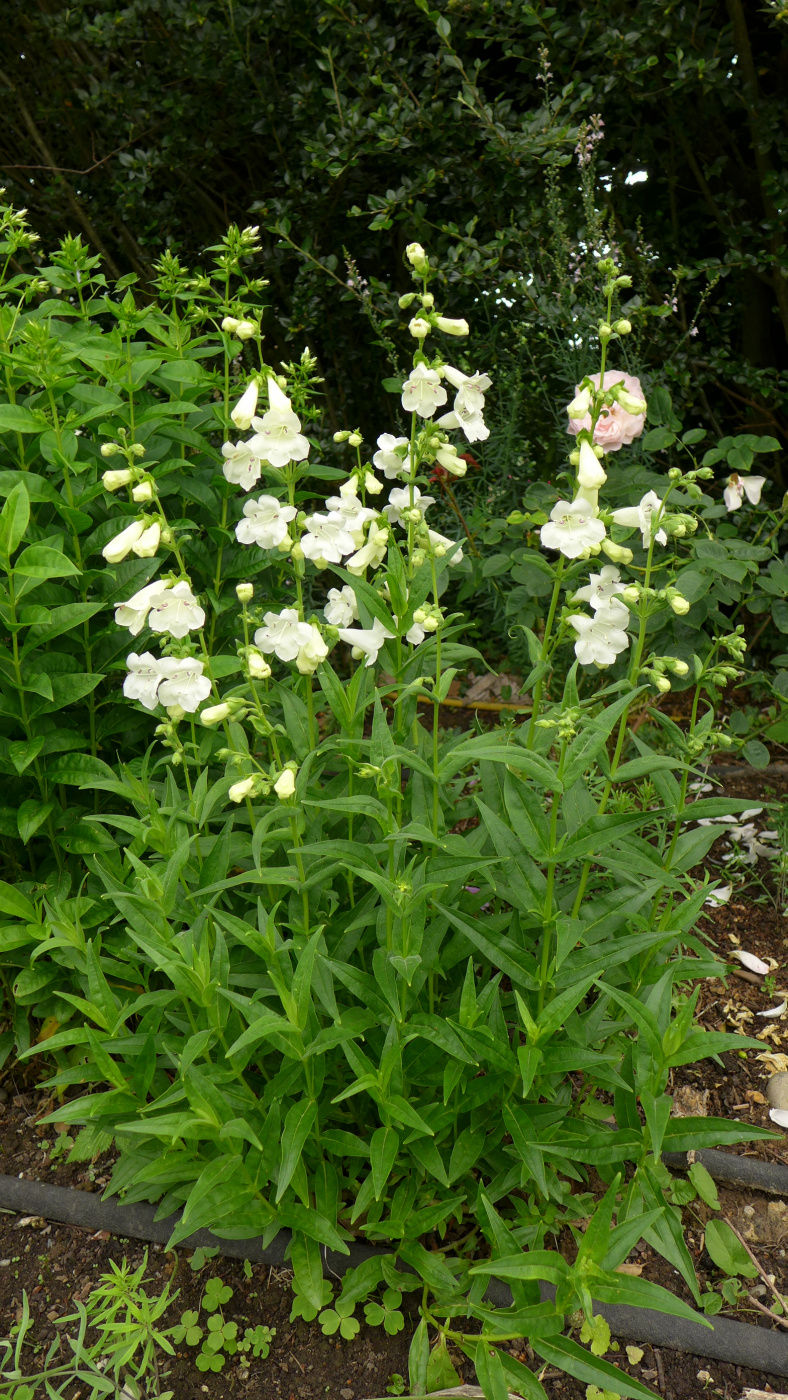Or penstemon White Bedder gets to about 18"