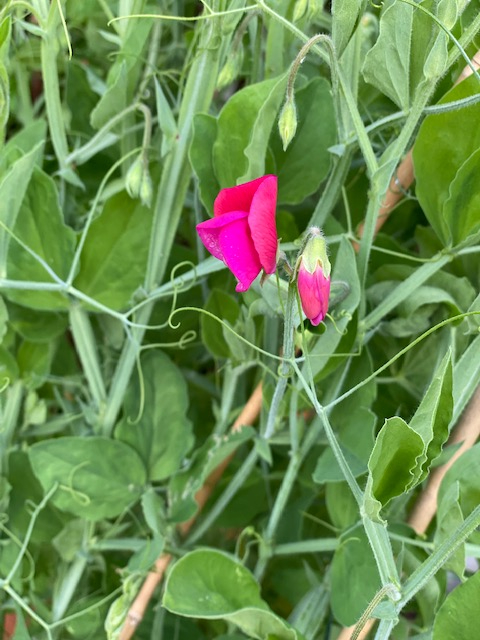 I sowed sweet pea seeds in early April and planted them out once the chance of frost passed last month.