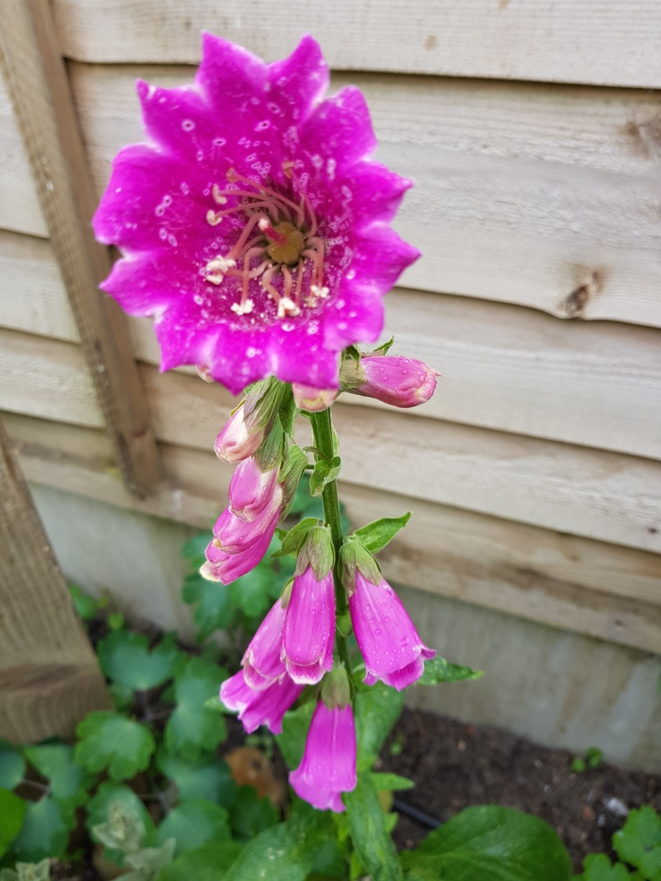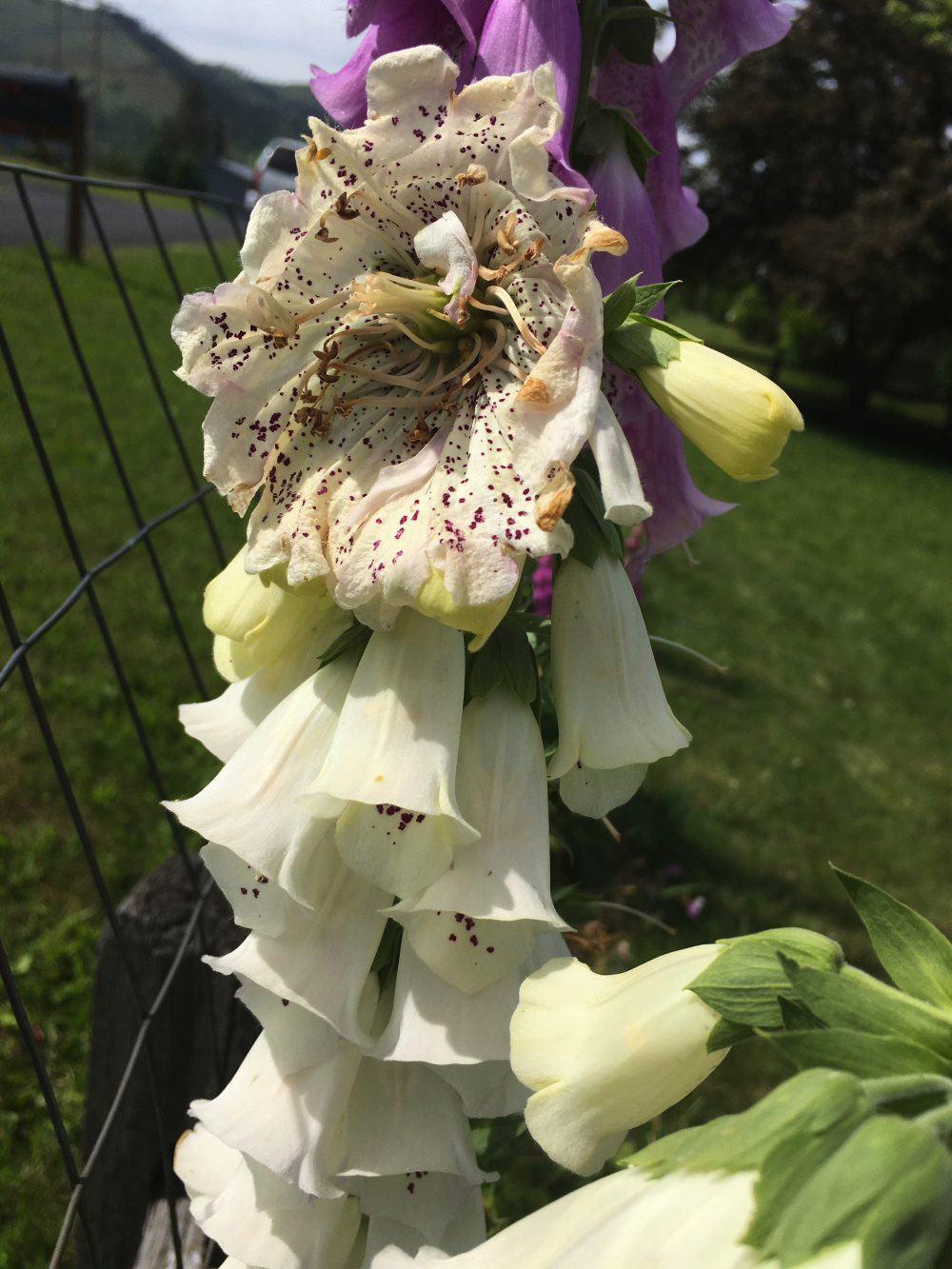 This year I have two foxglove mutations. The first one (white) had a big cone flower on top of the stalk (unfortunately I didn't get a pic of the bloom before it started wilting). I have seen this mutation around the web.