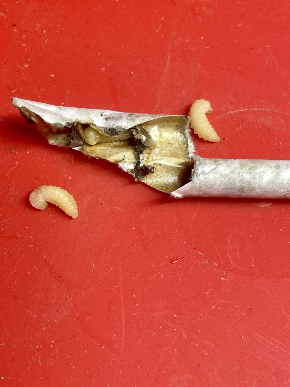 However one tube just contained grubs, are these likely to be bee grubs as I thought it was too late for that stage? Or what else could they be? The end of the tube was bunged up with mud just like the mason bee tubes..