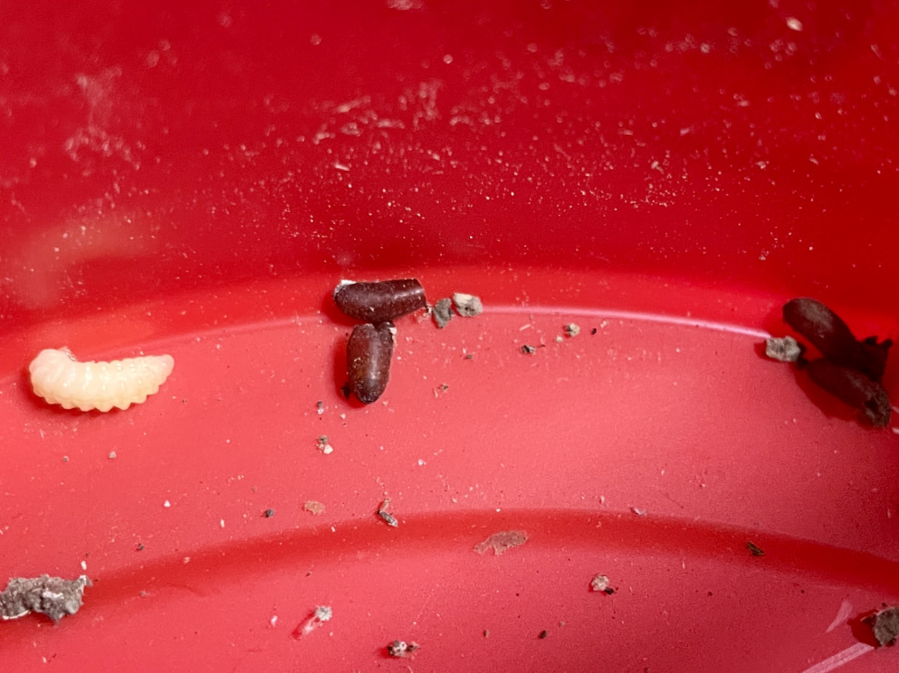 There was also a tube that contained these tiny chrysalis, I have no idea what these are. Obviously the maggots have changed into chrysalis, but what will they become? Maybe flies?