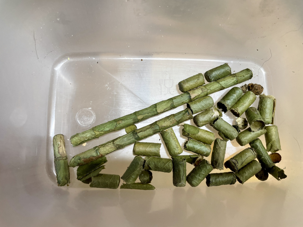 Started unwrapping some of the cardboard nesting tubes today, quite fascinating seeing inside the first time. Some are plugged with mud, sp probably mason bees, others occupied by leaf cutters.