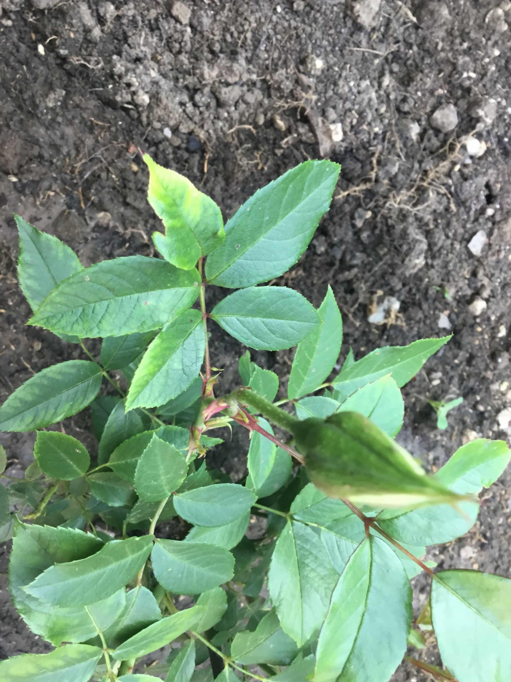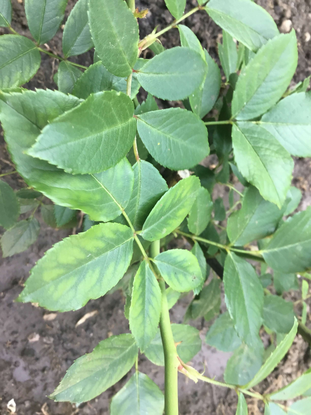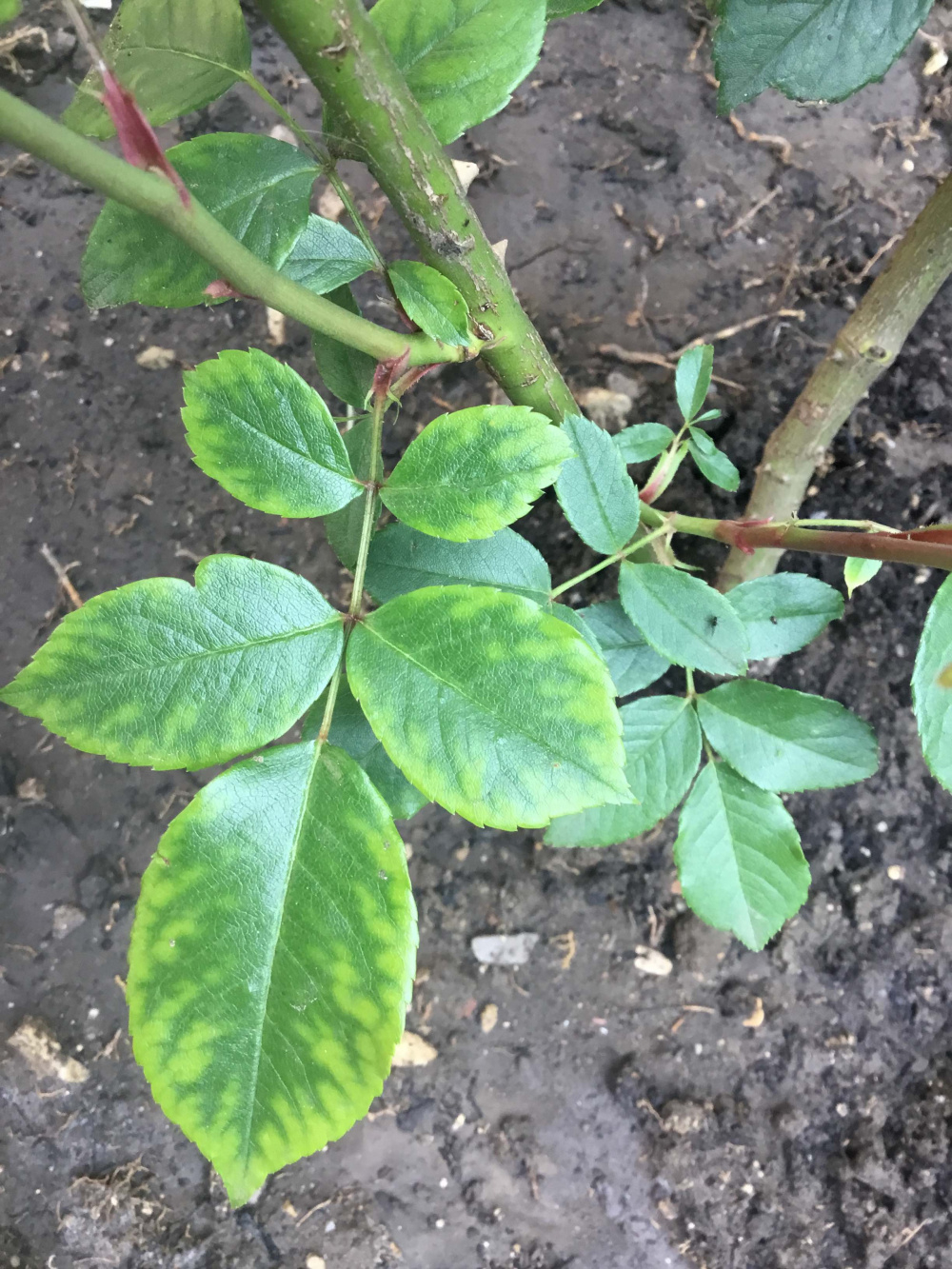 ..really nothing at all to worry about there, I get this a lot... have you watered the rose at all, including when you planted it? is your tap water very hard? some chelated iron can rectify that, but I really wouldn't bother at this stage.. your rose looks quite young, it will right itself in time..