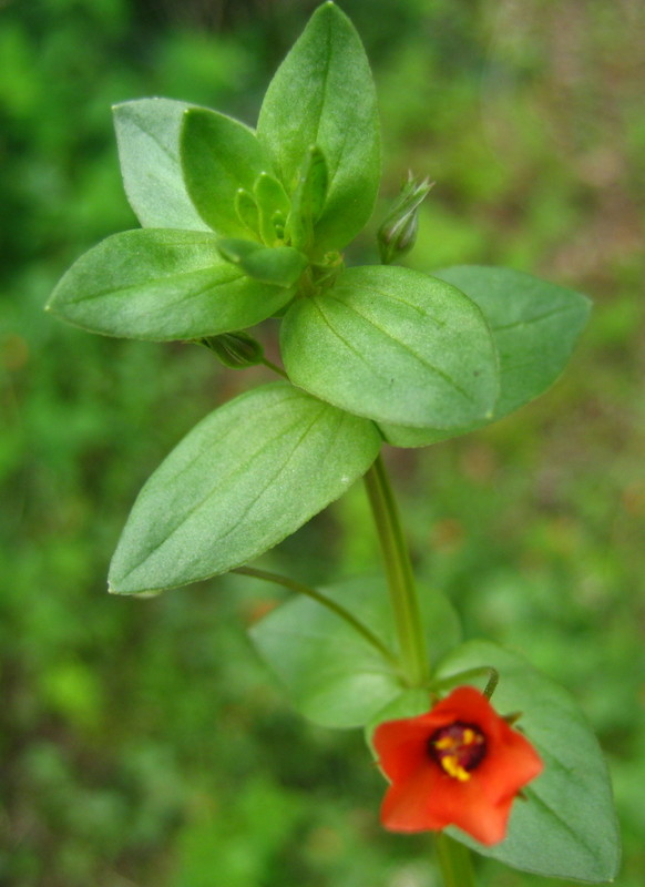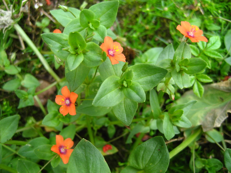 Sorry but leaves/growth habit very different from Anagallis arvensis..common name Scarlet pimpernel...leaves shiney, opposite, one flower per stalk etc See pics below.