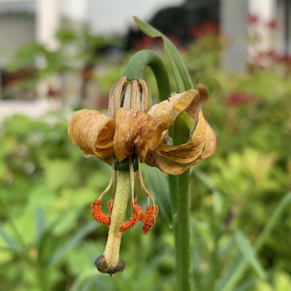 These plants have been coming up for the past 14 years in my front north facing garden. They look exotic with their rolled back petals but I’m always glad when they die back as they smell like rotting flesh!