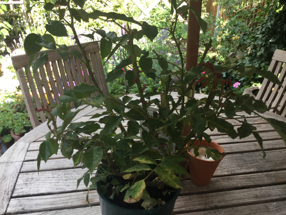 Morning everyone. I went to the GC this morning to get some herbs and was promptly drawn to a slightly sickly looking rose. I knew I had to buy it 🙄 but now need advice on how to get it back to good health. The pictures make it look better than it is and I managed to leave all the dead and broken leaves and stems at the GC! Does it just need a good soak and feed (I’ve got fish blood and bone and Top Rose) or is there anything else I can do to help it along. There is some new growth so 🤞. Apologies if it’s silly question but I’m fairly new to roses .... but completely addicted. Thanks in advance.