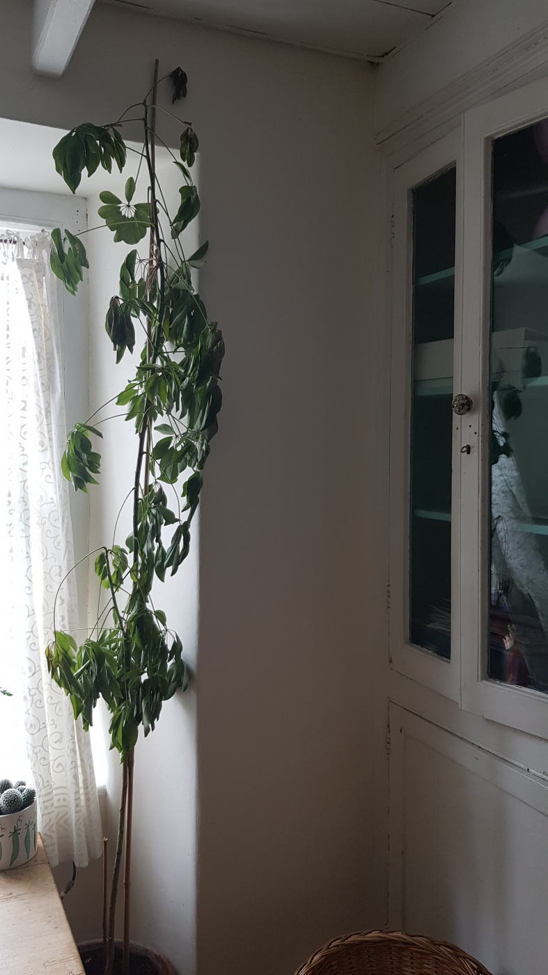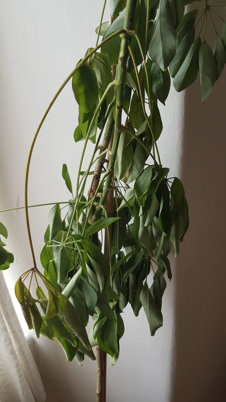 Hello. New guy (lady) here. I have an 8 foot Umbrella plant that has been with me for years. It came with me to Cornwall where I am now. It did well for a few months but now looks on the verge of dying. It was once so lush. it has been repotted to a bigger pot with a mix of good composts. The soil doesn't seem too dry or too wet. I water it weekly. It is by a window but not being burned by sun. It has a bamboo cane support. I feed it with a booster once a week. I don't want to lose it. Do you have any ideas please? nb where it was with me before it had a skylight above it but I don't have that option now. Thank you in advance. Laura