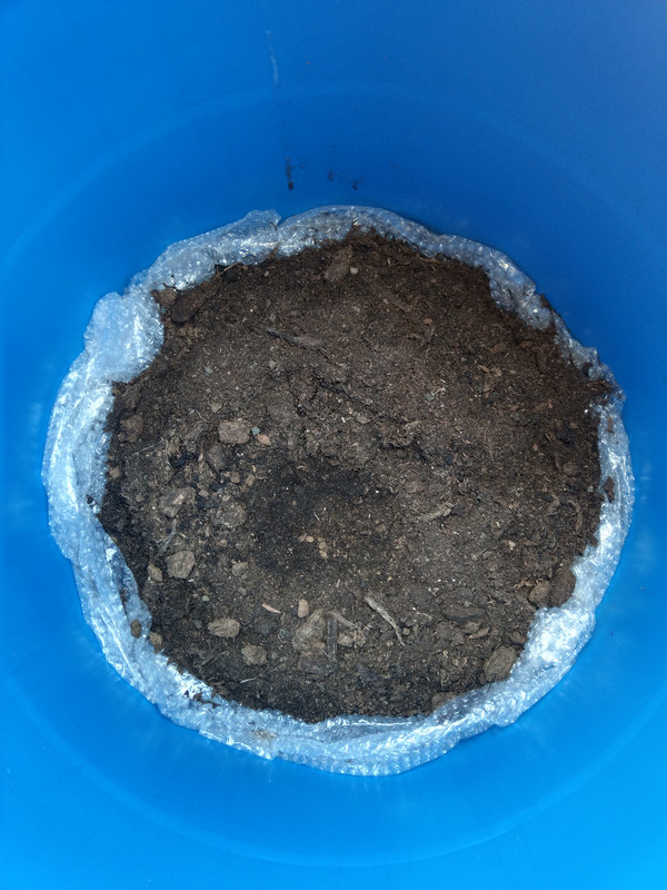 For the corner between the benches (the most exposed spot) i custom built the pot from plywood scraps. Waterproofed it and lined it with PE and polystyrene boards. Filled the bottom with polystyrene fragments.