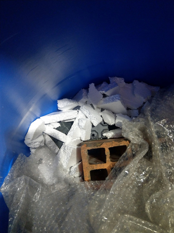 I filled the bottom with hollow building blocks, old upturned nursery pots and polystyrene fragments.