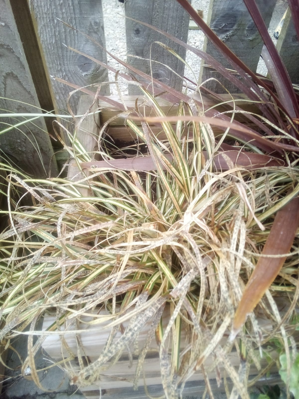 Could anyone help me with identifying what is wrong with the Carex on the left hand side of the planter?