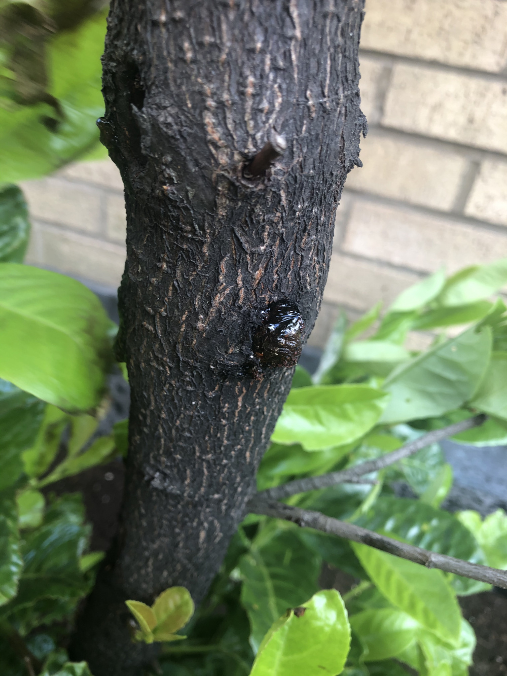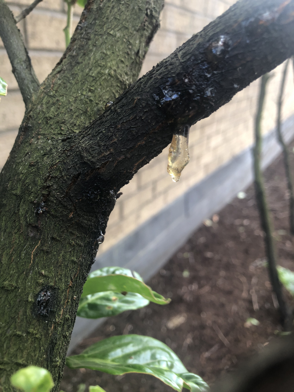 Cherry laurel oozing gum like substance