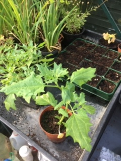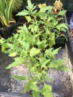 Sorry I've forgotten how to do pictures! These seedlings appeared in one of my seedtrays (could have been plumbago or perovskia) and got potted on. They are quite fleshy but I have no idea what they are. The bushy one stands about 16cm tall. I have not planted them out as they look look slug fodder! Do I want to keep them? I just can't place that leaf shape. Many thanks for any suggestions as to what they might be.