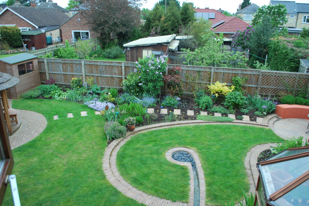 I think the triangular bed in front of the stepping stones may be tricky but as long as we get the main beds around the perimeter.