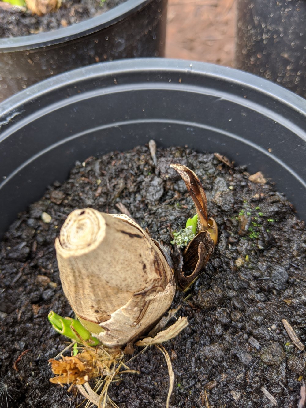They are in individual pots of compost sitting outside in a sheltered spot with afternoon sunshine for a couple of hours.