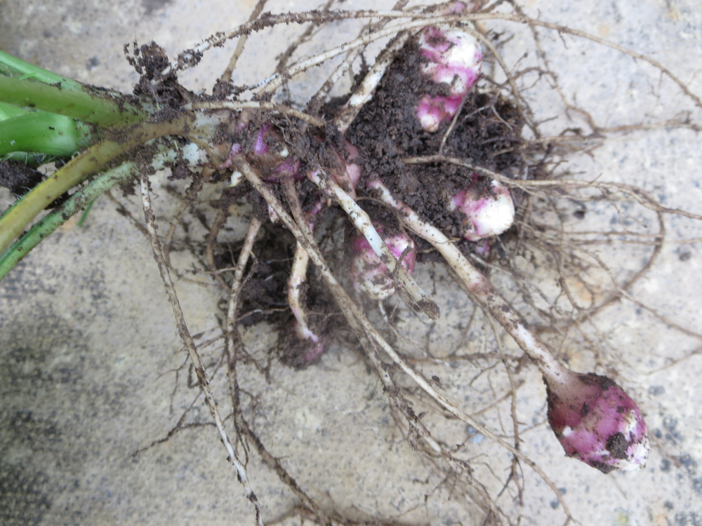 I remember something like this (in the same place last year), I never knew what it was but when it topped the six foot fence I gave up. I have dug one up in case it helps to name it.