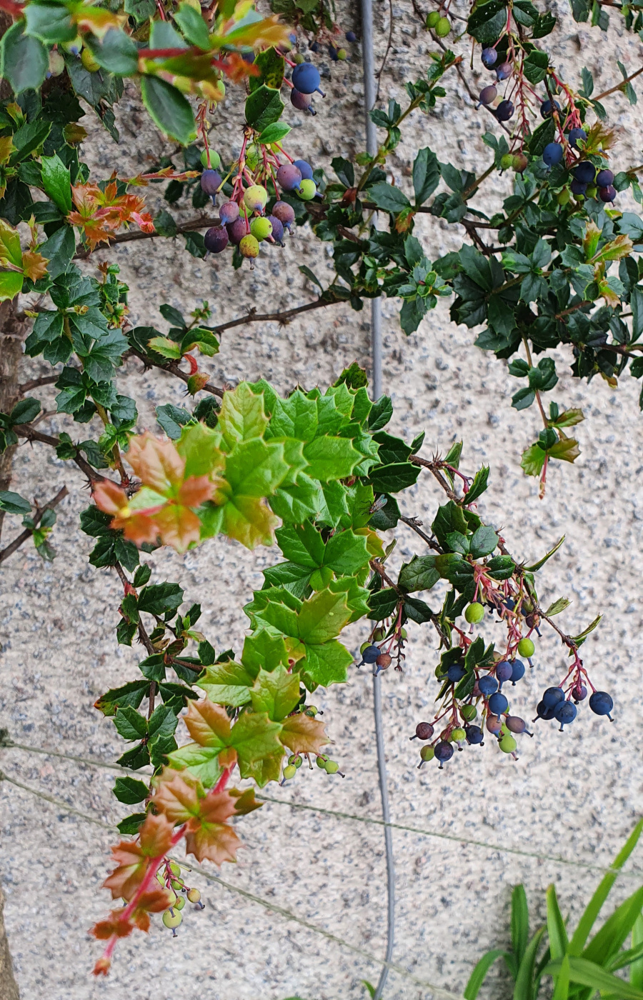 April - May it flowers small yellow flowers, and as you can see in the photos, they have small blue fruits.