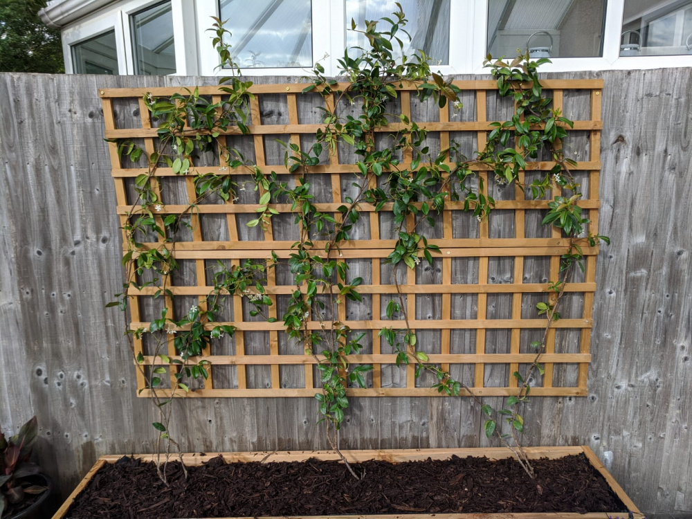 Beginner gardener here. Just replanted this star Jasmine as it started to look a bit sad in the pots they were previously in. When I first bought it a month ago it had loads of flowers and smelled incredible...now it's mainly leaves and the smell has gone.