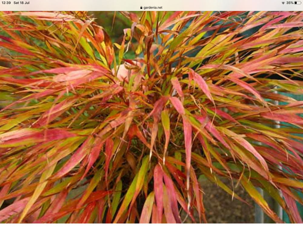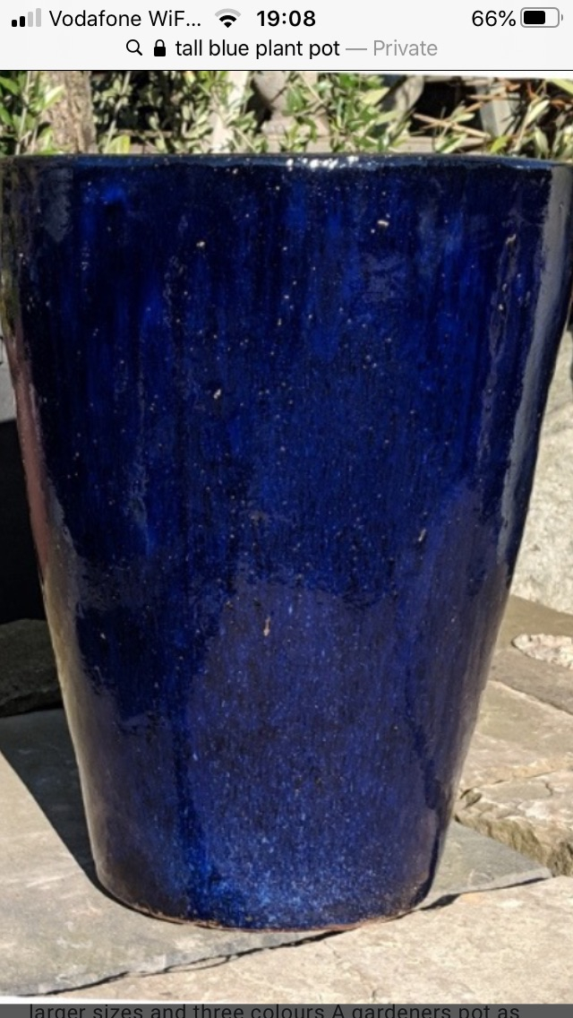 I’m seeking ideas, please, on what to plant in this tall, blue pot. I intend positioning it in a focal point towards the end of the garden, it will get some sun and dappled shade. Ideally, I’d like light or variegated foliage, either a shrub or perennial, with a trailing or weeping habit. Had considered a Clematis, but already have a few. Thank you.