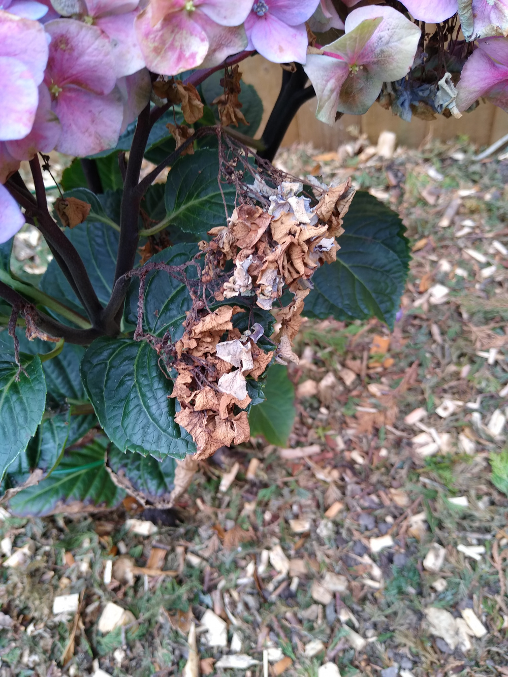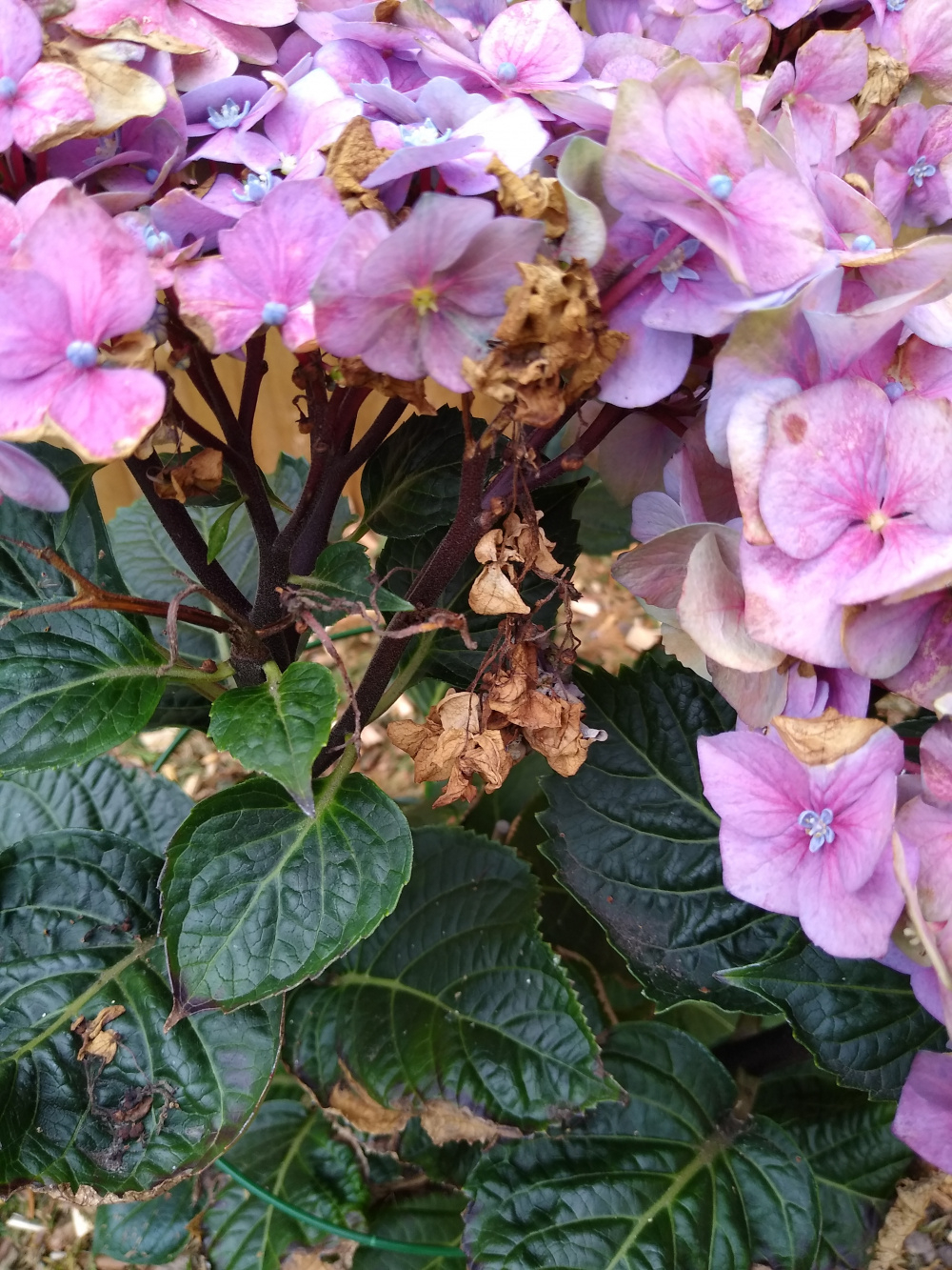 Hi folks,I planted this Hydrangea about 4 to 6 weeks ago and it doesn't look in great condition,can I save this and is there anything I can do to help it?Leaves are brown and crusty and some of the heads had rotted too