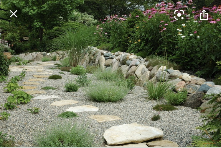 If you’re going to link the buildings with a path of some sort, I’ve seen some really interesting ‘rock garden’ ideas recently with a path and water feature made to look like a dried riverbed. I’ll try to find a good picture. It might not be an idea for everyone but it looked pretty unique!