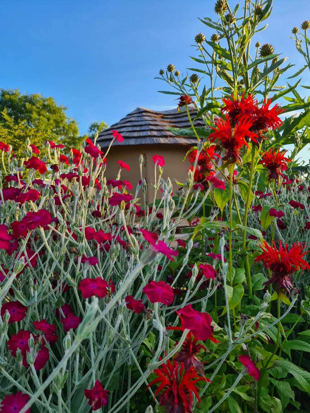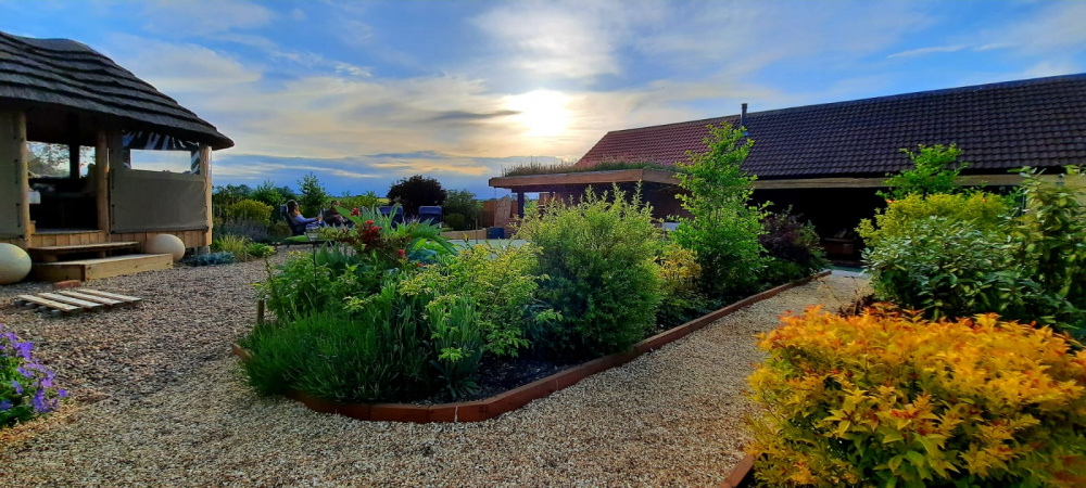 We are now just over 1 year on the journey of redesigning our garden. As people asked me to update with progress pics, here are a few more 😊 We moved the existing greenhouse to the back corner of the garden where the veg planters were built. We added an outdoor hut for Summer and added a living roof to the bbq area. Everything has grown like mad. I will be splitting plants to go in new beds in the Autumn. First though, our Summer holiday will be spent laying decking, finishing the outdoor bbq area and getting the water feature finished.