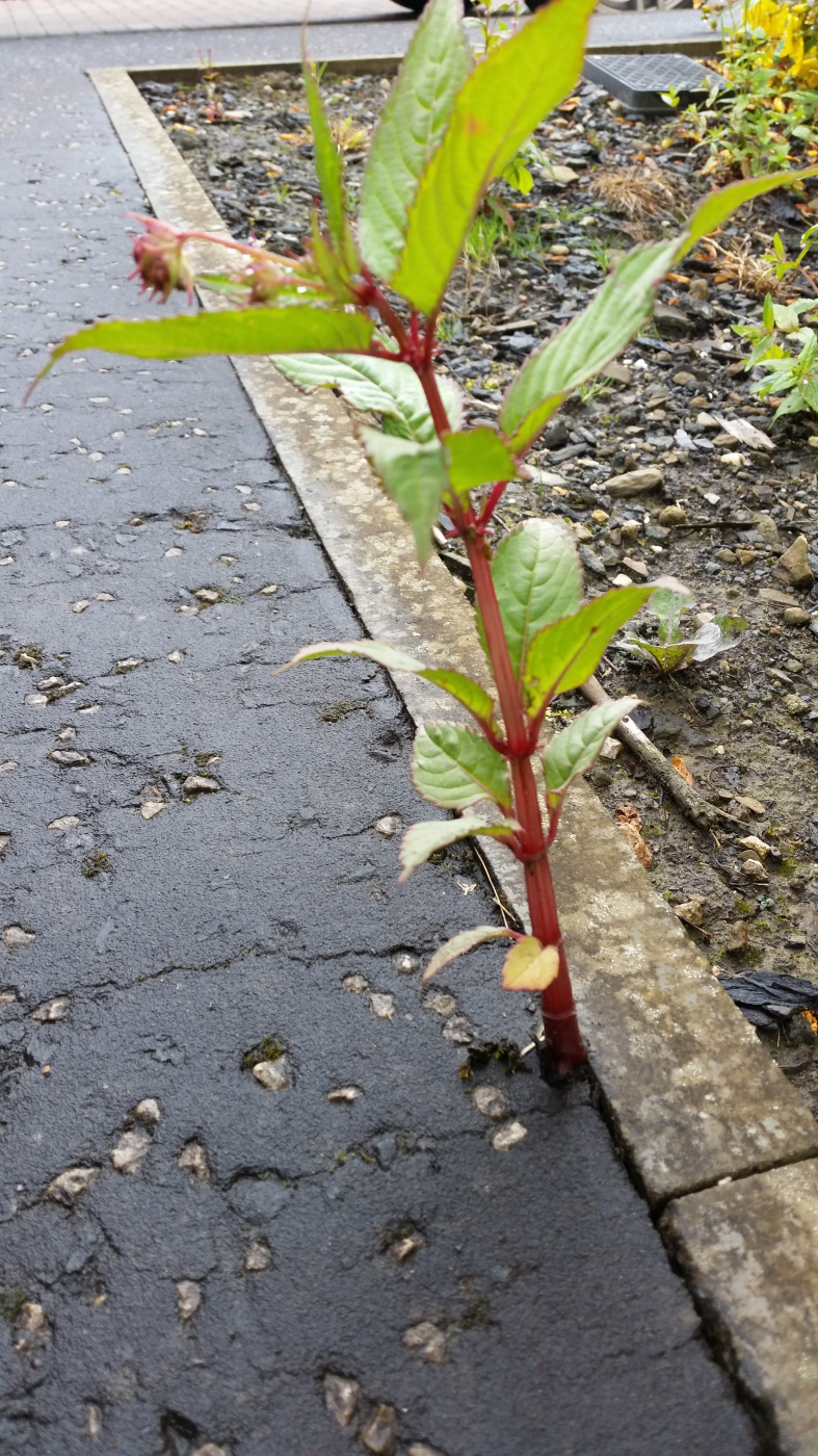 It's poking out a crack next to a neighbours house. I did originally think it was a super impressive willowherb, but I'm not sure. They're garden had a lot of them and this one had escaped onto the path.